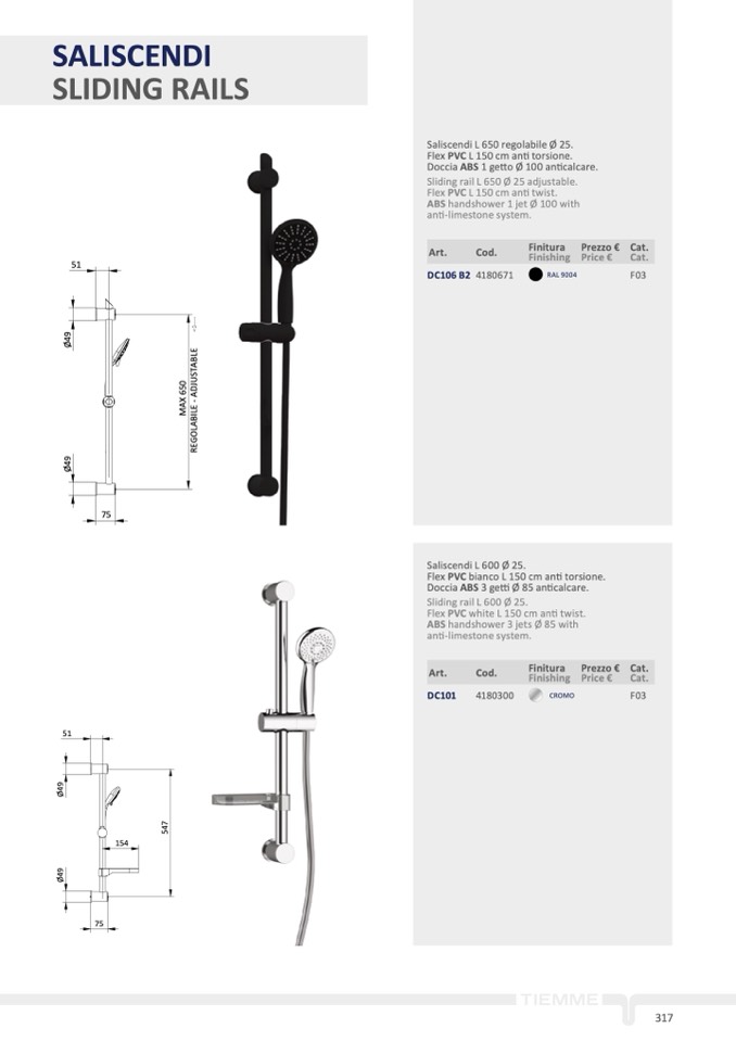 Doccia ABS 1 getto Ø 100 anticalcare.