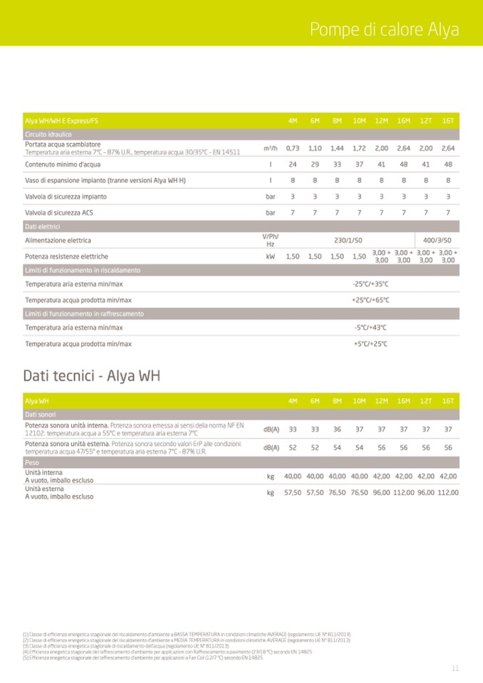 Temperatura aria esterna 7°C – 87% U.R., temperatura acqua 30/35°C - EN 14511