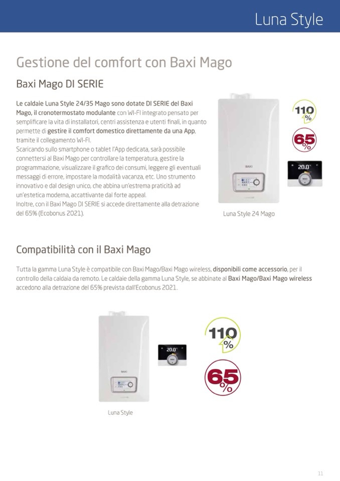 Le caldaie Luna Style 24/35 Mago sono dotate DI SERIE del Baxi