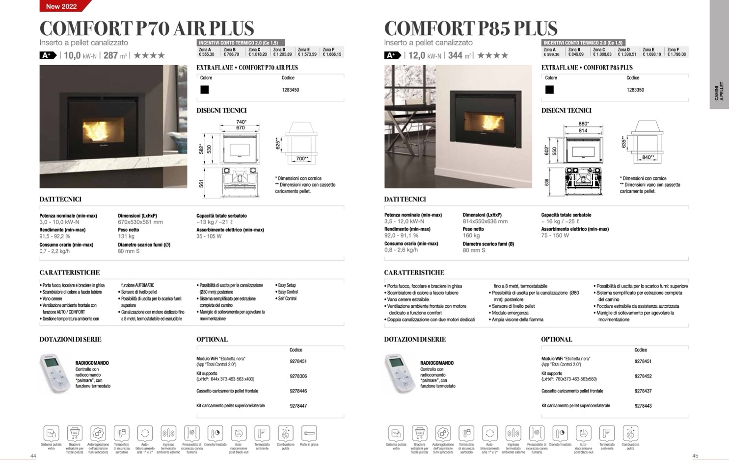 • Possibilità di uscita per lo scarico fumi: superiore