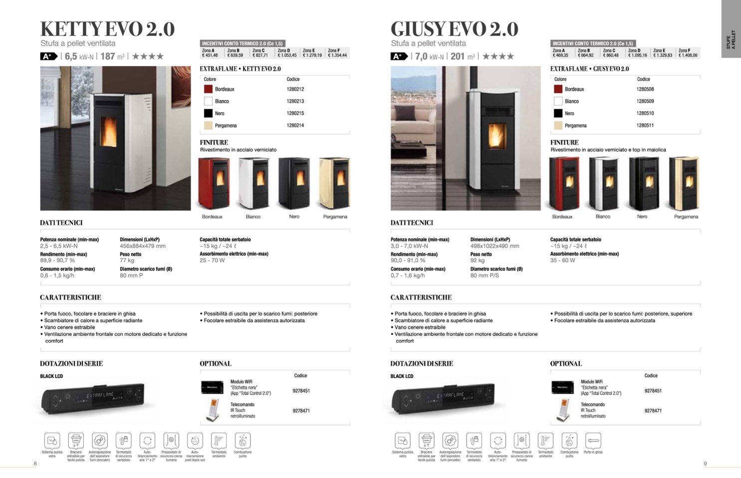 • Possibilità di uscita per lo scarico fumi: posteriore, superiore