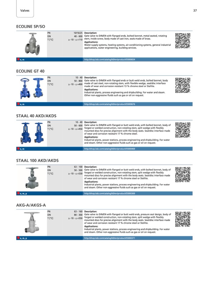Industrial plants, process engineering and shipbuilding. For water and steam.