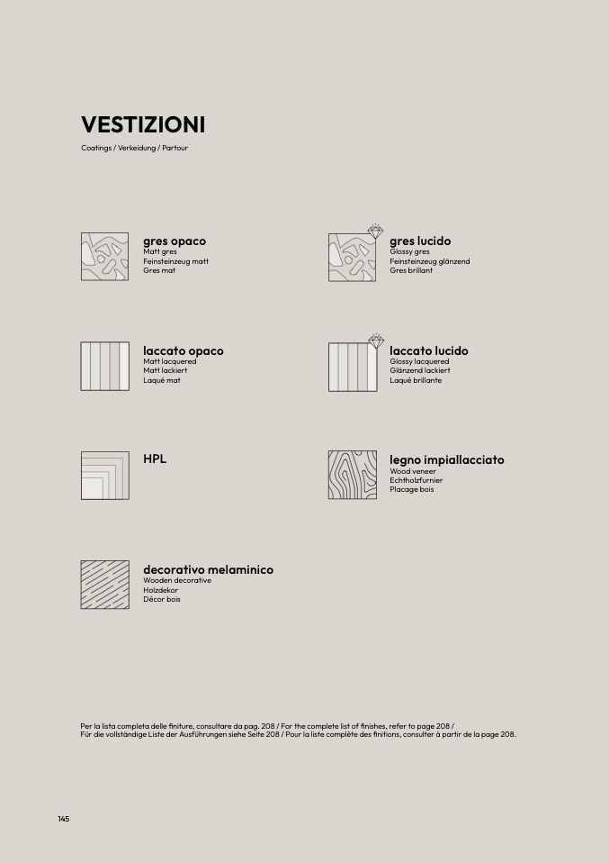 finiture, consultare da pag. 208 / For the complete list of finishes, refer to page 208 /