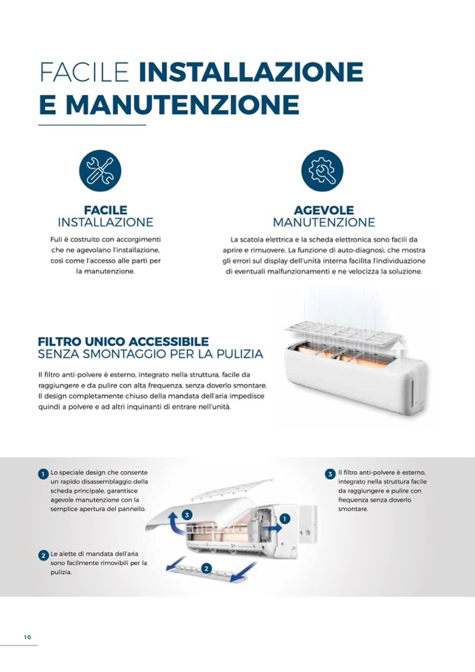 Il filtro anti-polvere è esterno, integrato nella struttura, facile da