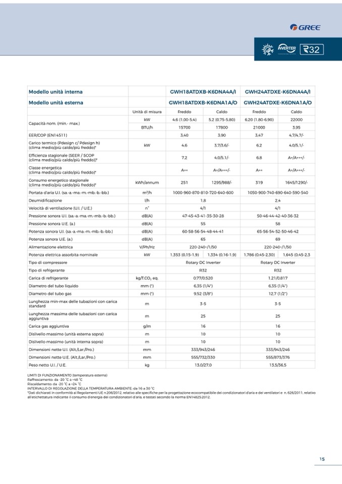 *Dati dichiarati in conformità ai Regolamenti UE n.206/2012, relativo alle specifiche per la progettazione ecocompatibile dei condizionatori d’aria e dei ventilatori e n. 626/2011, relativo