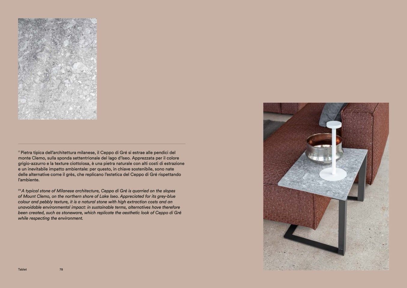 colour and pebbly texture, it is a natural stone with high extraction costs and an
