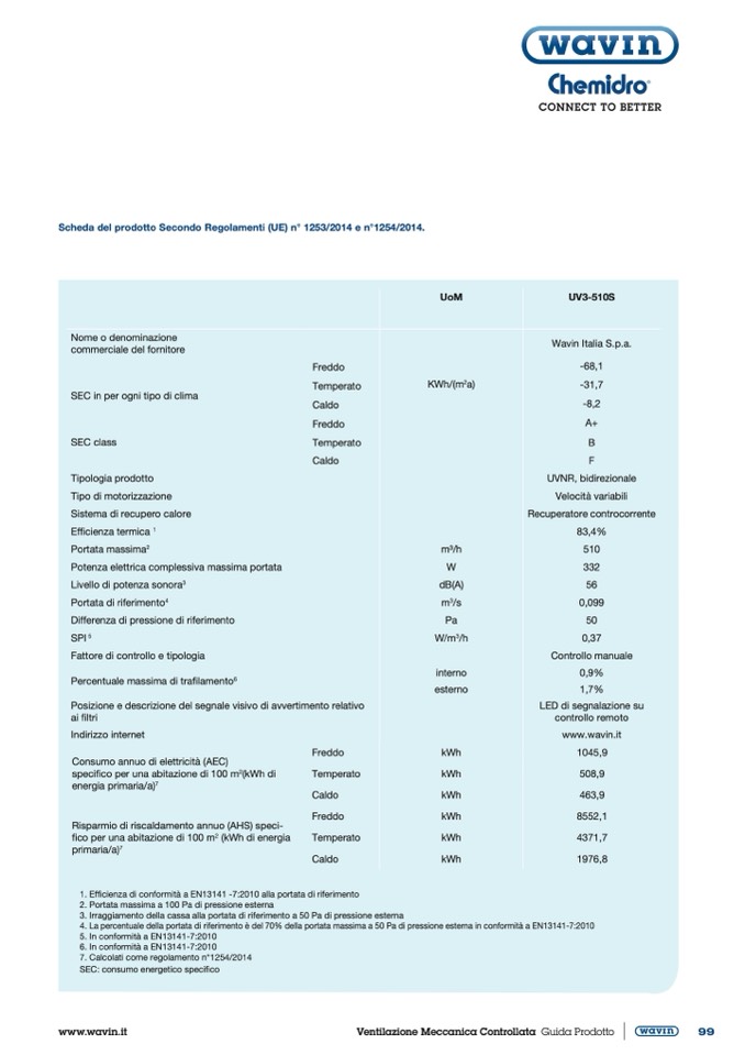 Scheda del prodotto Secondo Regolamenti (UE) n° 1253/2014 e n°1254/2014.