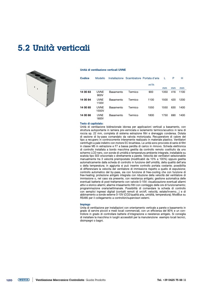 Unità di ventilazione verticali UVNE