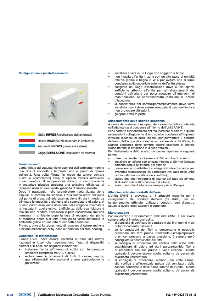 nell’aria interna si condensa all’interno dell’unità UVNE.