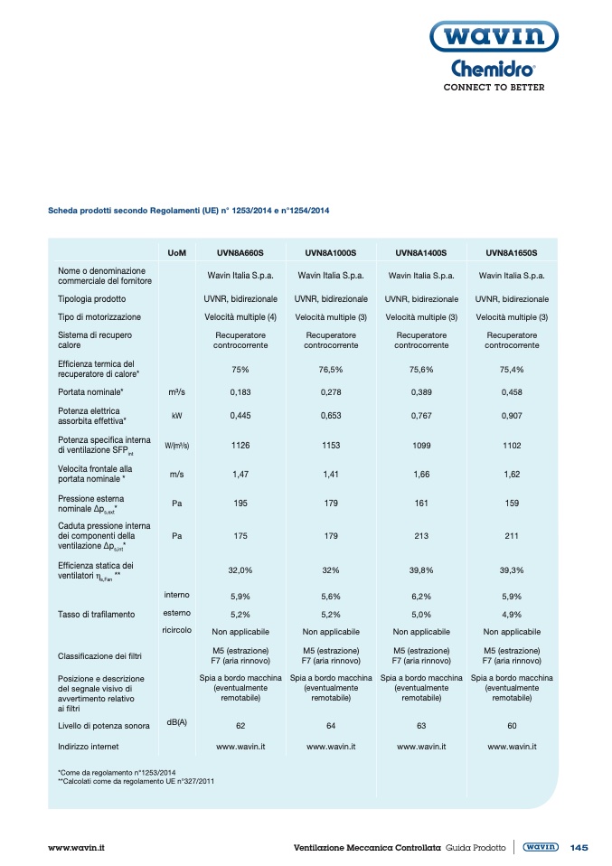 Scheda prodotti secondo Regolamenti (UE) n° 1253/2014 e n°1254/2014