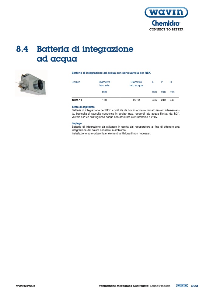 valvola a 2 vie sull'ingresso acqua con attuatore elettrotermico a 230V.
