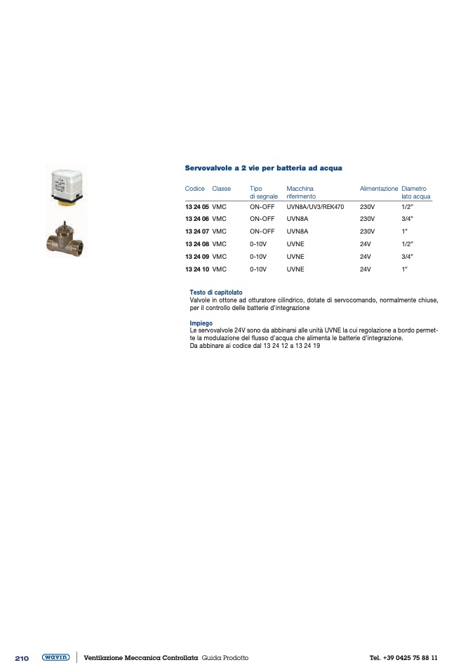 Le servovalvole 24V sono da abbinarsi alle unità UVNE la cui regolazione a bordo permet-