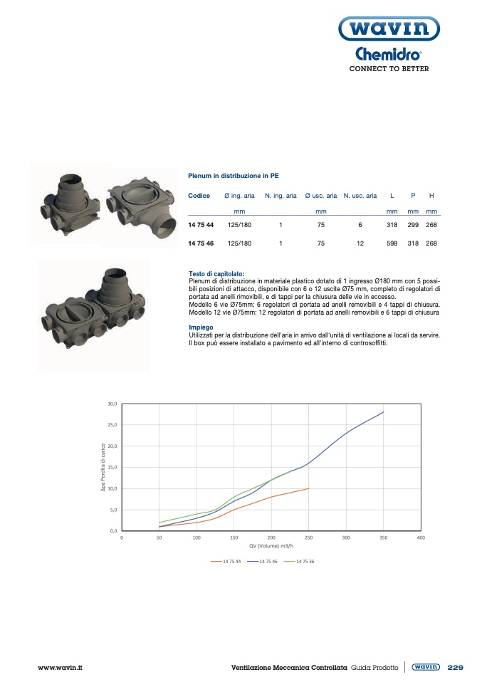 bili posizioni di attacco, disponibile con 6 o 12 uscite Ø75 mm, completo di regolatori di