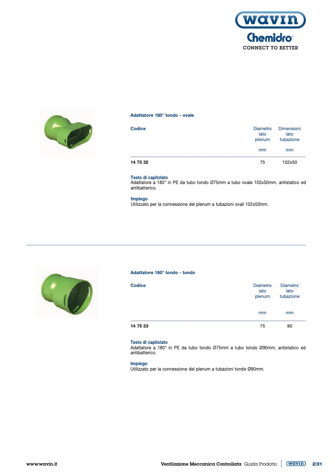 Utilizzato per la connessione del plenum a tubazioni ovali 102x50mm.