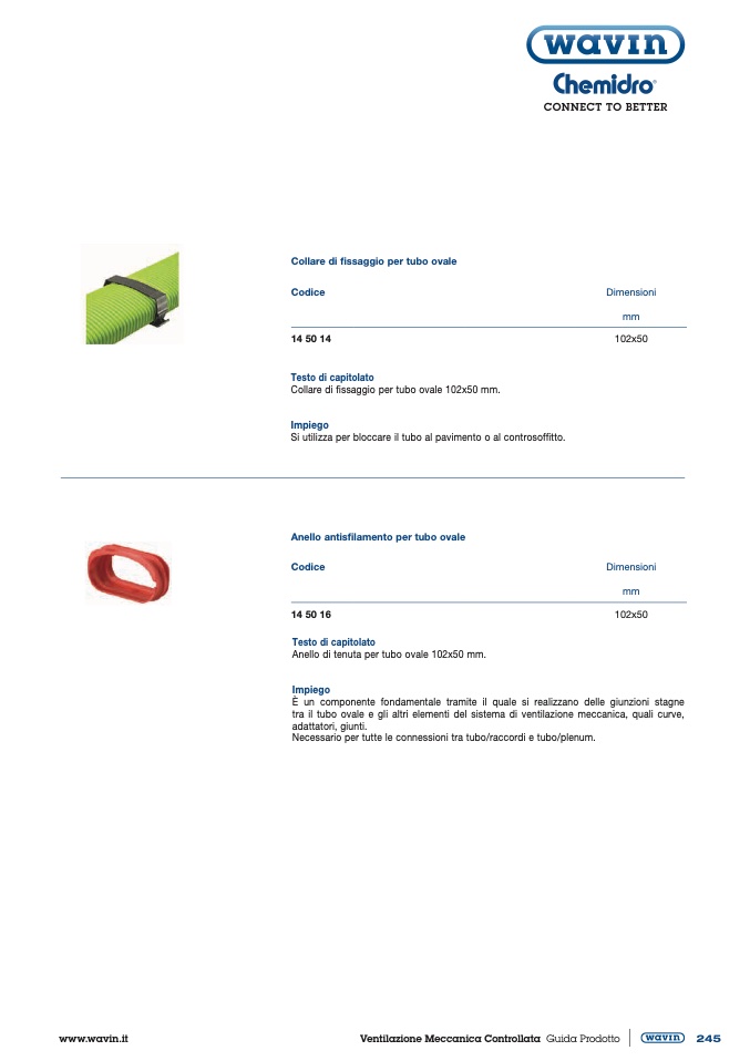 tra il tubo ovale e gli altri elementi del sistema di ventilazione meccanica, quali curve,