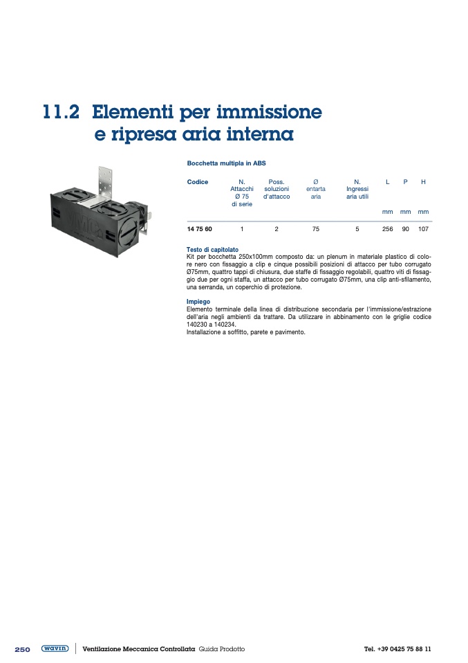 dell'aria negli ambienti da trattare. Da utilizzare in abbinamento con le griglie codice