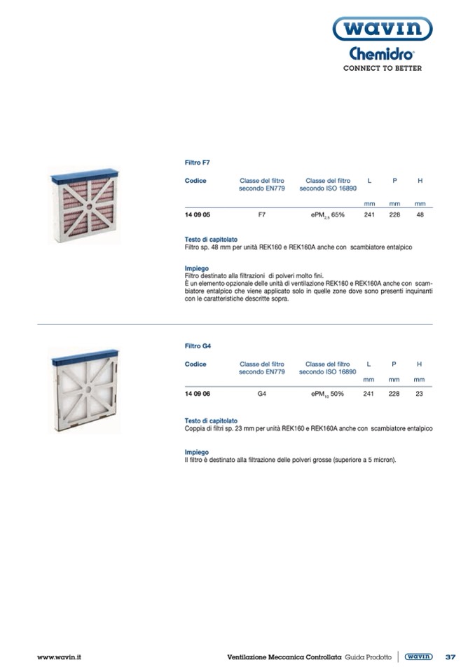 Filtro sp. 48 mm per unità REK160 e REK160A anche con scambiatore entalpico