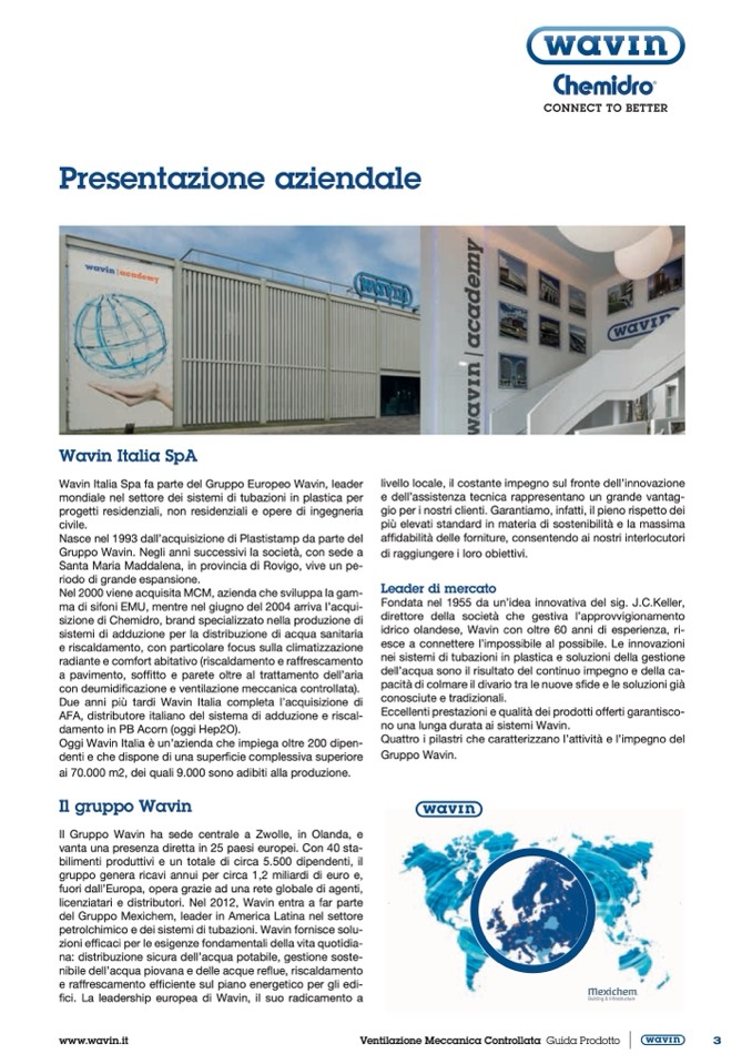 Wavin Italia Spa fa parte del Gruppo Europeo Wavin, leader