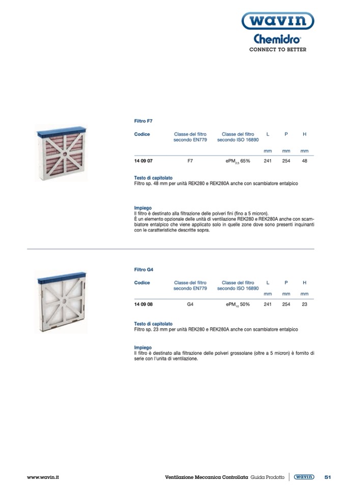 Filtro sp. 48 mm per unità REK280 e REK280A anche con scambiatore entalpico