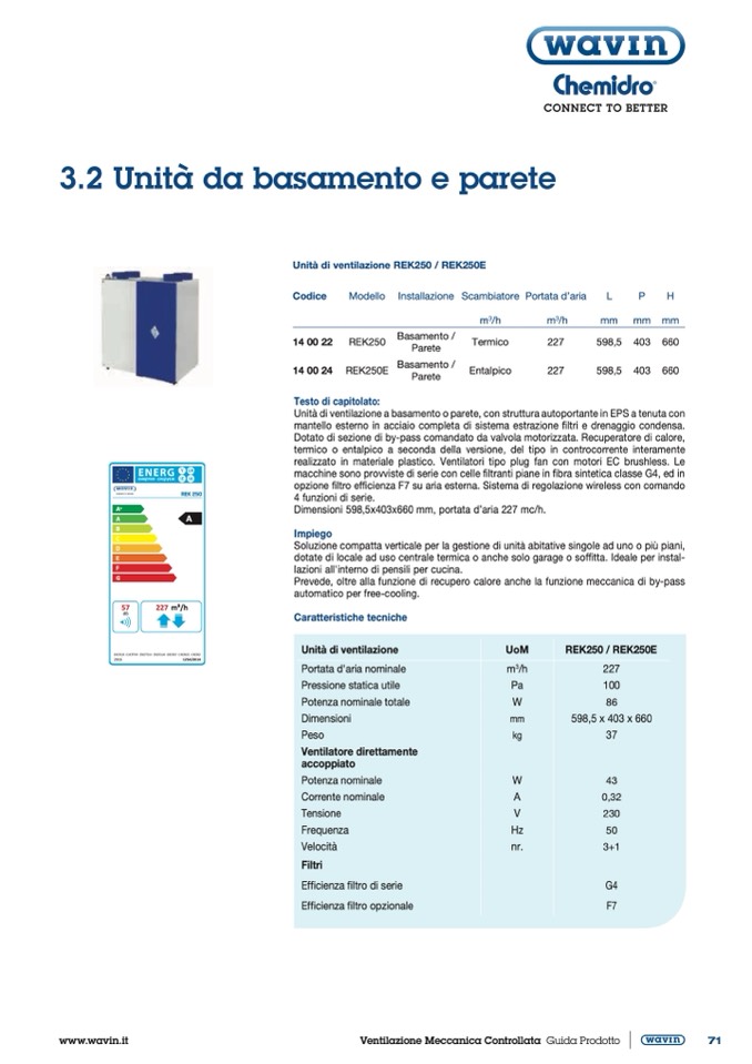 Dimensioni 598,5x403x660 mm, portata d’aria 227 mc/h.