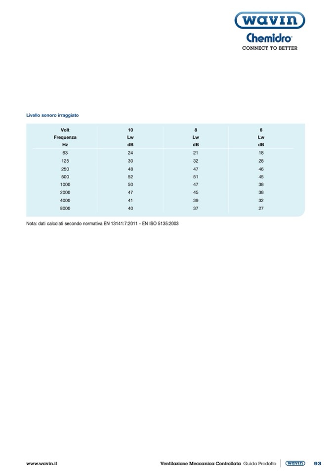 Nota: dati calcolati secondo normativa EN 13141:7:2011 - EN ISO 5135:2003