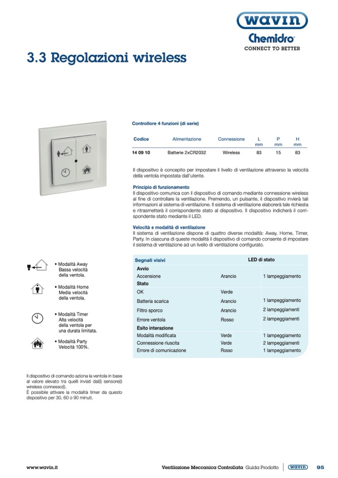 al fine di controllare la ventilazione. Premendo, un pulsante, il dispositivo invierà tali
