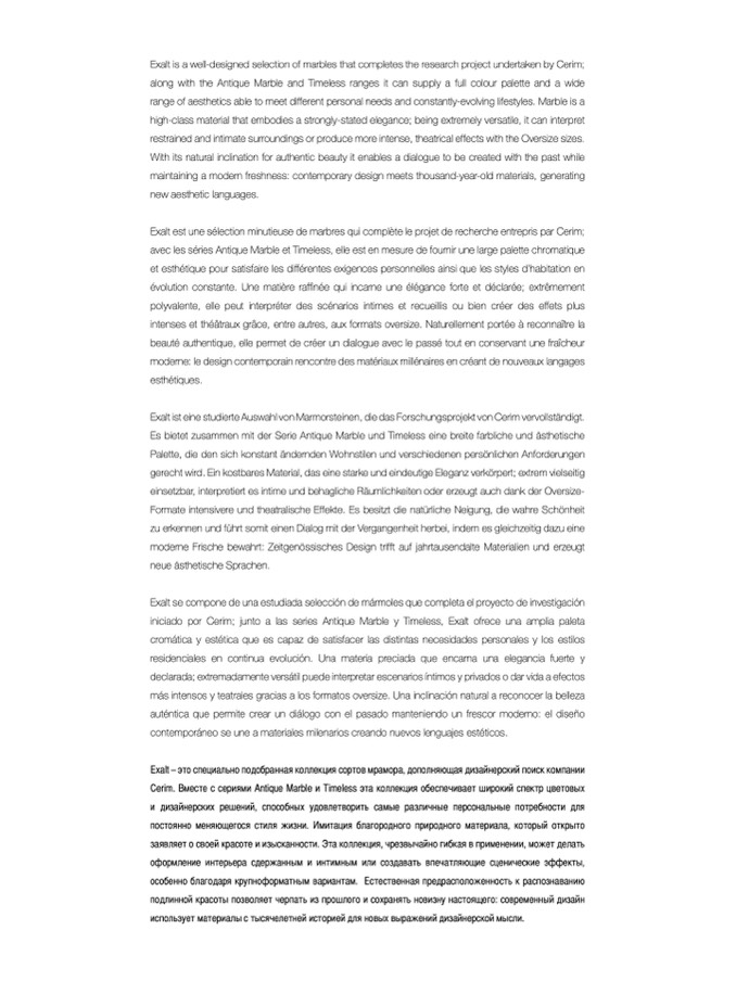 Exalt est une sélection minutieuse de marbres qui complète le projet de recherche entrepris par Cerim;
