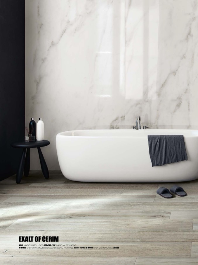 WALL: MAGIC WHITE LUCIDO 120x240 - TOP: MAGIC WHITE LUCIDO