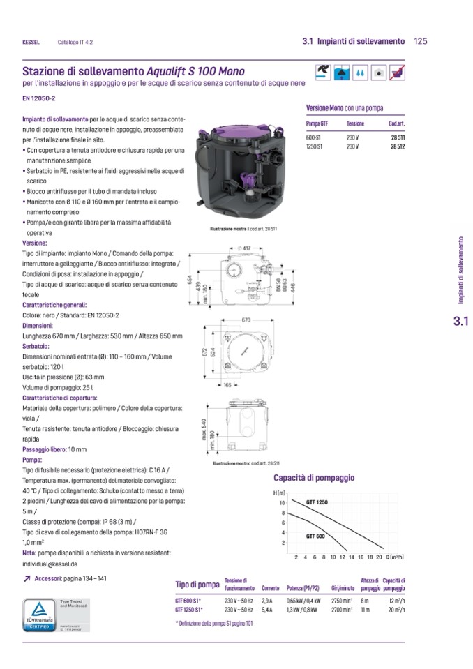 interruttore a galleggiante / Blocco antiriflusso: integrato /