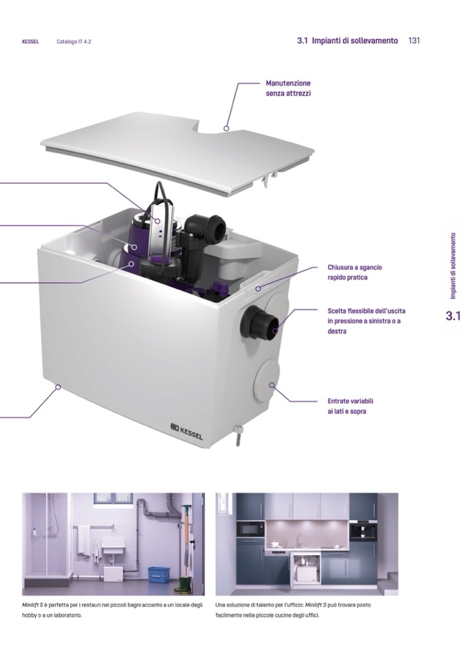Minilift S è perfetta per i restauri nei piccoli bagni accanto a un locale degli