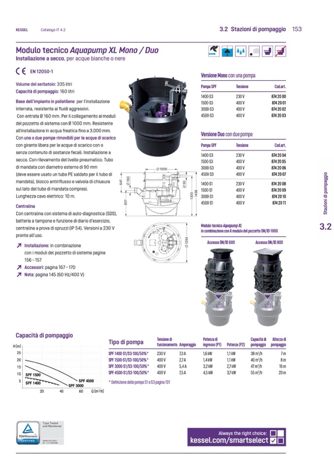 all'installazione in acqua freatica fino a 3.000 mm.