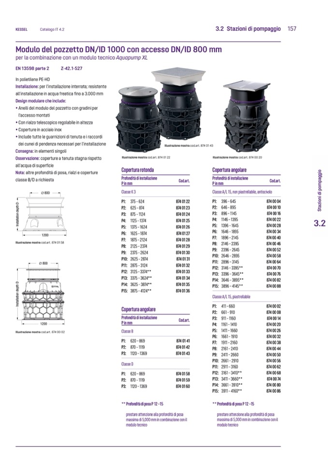 all’installazione in acqua freatica fino a 3.000 mm