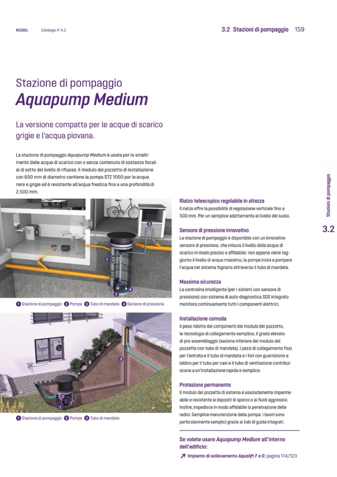 pozzetto con tubo di mandata), i pezzi di collegamento fissi