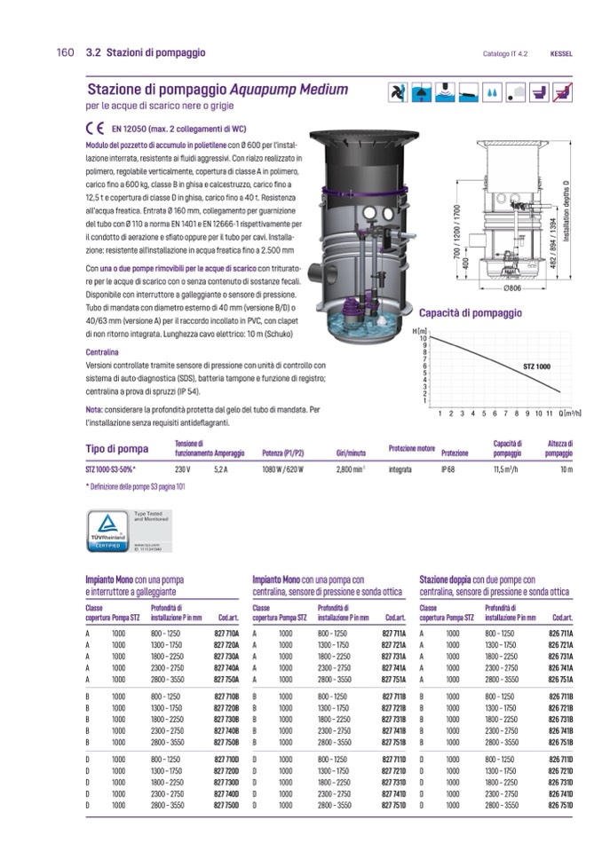 zione: resistente all'installazione in acqua freatica fino a 2.500 m