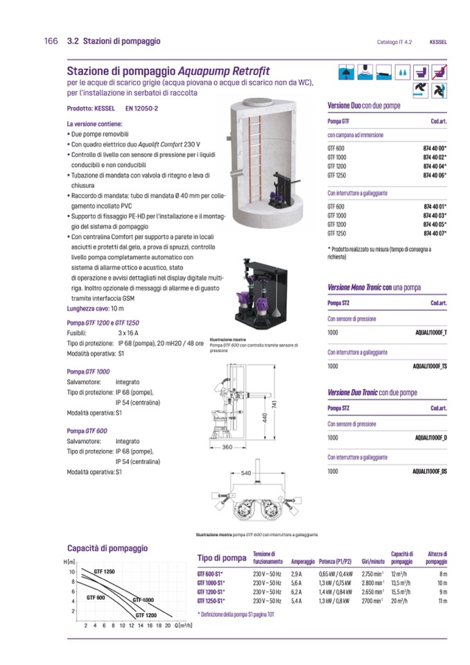 Illustrazione mostra pompa GTF 600 con interruttore a galleggiante