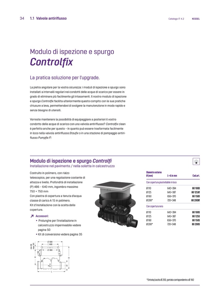 condotto delle acque di scarico con una valvola antiriflusso? Controlfix clea