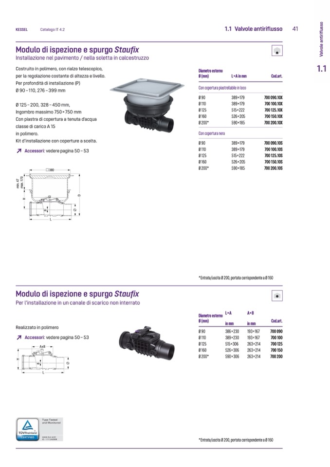 *Entrata/uscita Ø 200, portata corrispondente a Ø 160