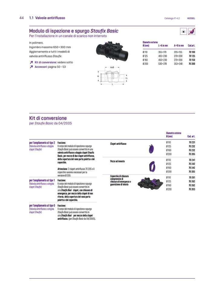 Attenzione: 2 clapet antiriflusso 70 205 e i