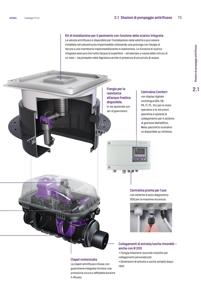 La valvola antiriflusso è disponibile per l'installazione nella soletta e può esser