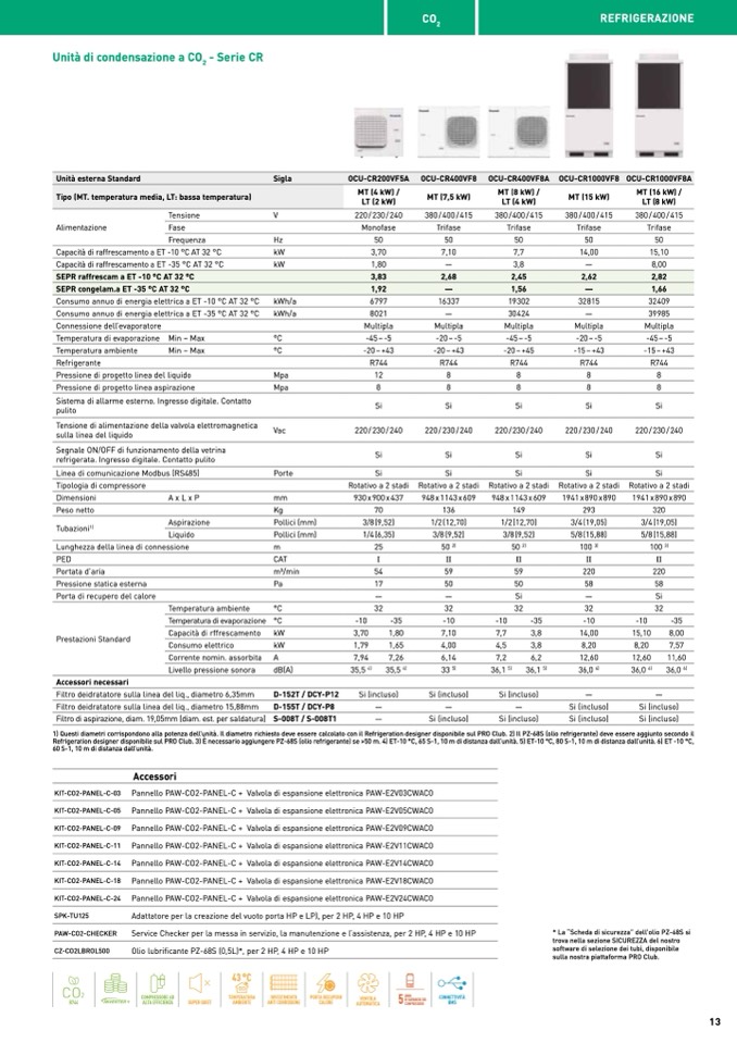 Refrigeration designer disponibile sul PRO Club. 3) È necessario aggiungere PZ-68S (olio refrigerante) se >50 m. 4) ET-10 °C, 65 S-1, 10 m di distanza dall’unità. 5) ET-10 °C, 80 S-1, 10 m di distanza dall’unità. 6) ET -10 °C,