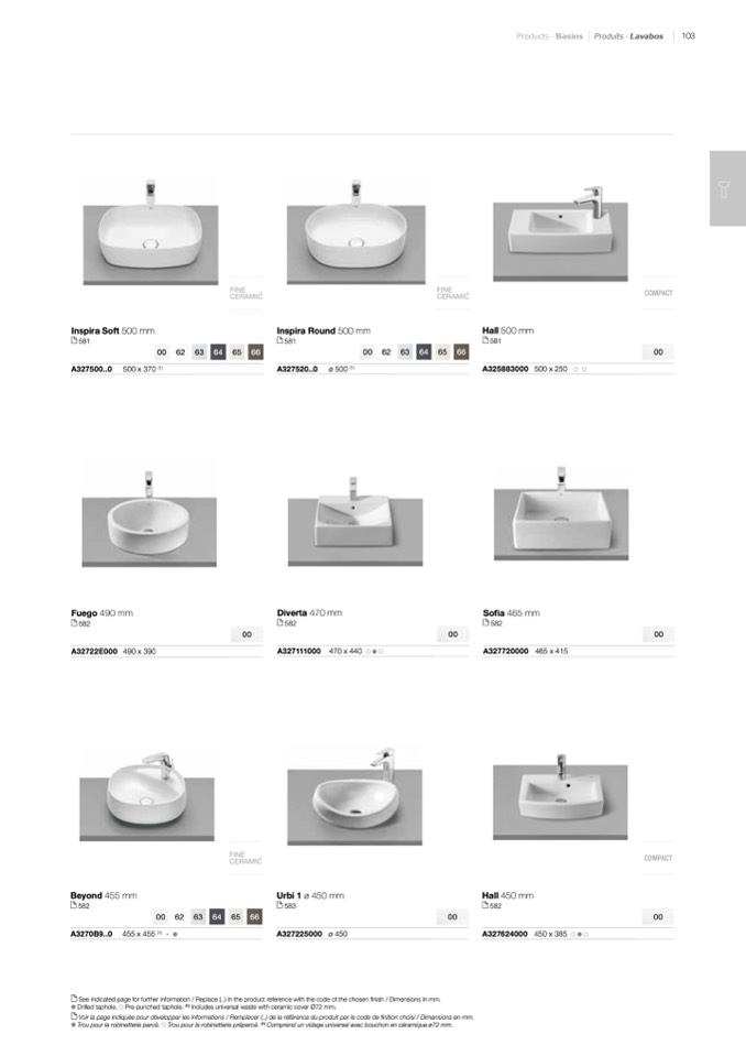 See indicated page for further information / Replace (..) in the product reference with the code of the chosen finish / Dimensions in mm.