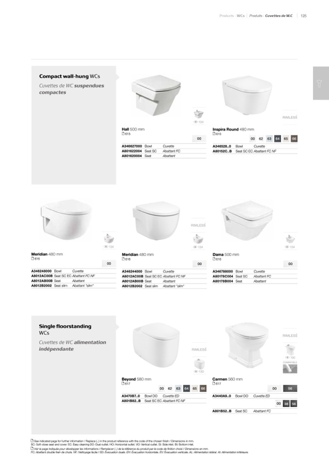 Products – WCs Produits – Cuvettes de W.C