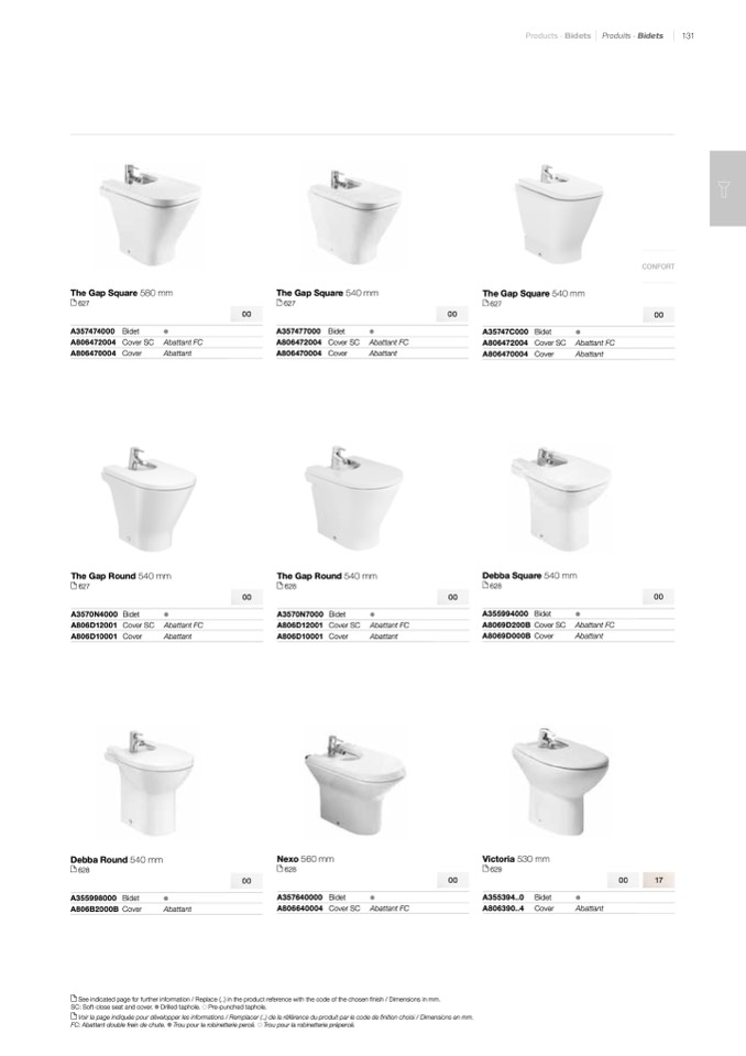 Voir la page indiquée pour développer les informations / Remplacer (..) de la référence du produit par le code de finition choisi / Dimensions en mm.