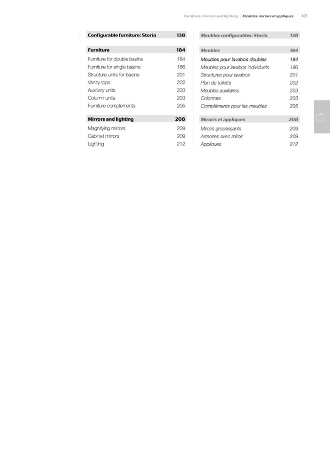 Furniture, mirrors and lighting Meubles, miroirs et appliques
