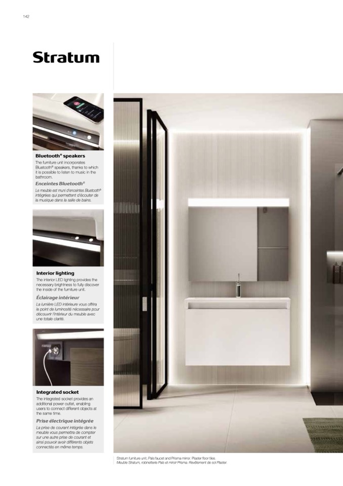 Meuble Stratum, robinetterie Pals et miroir Prisma. Revêtement de sol Plaster.