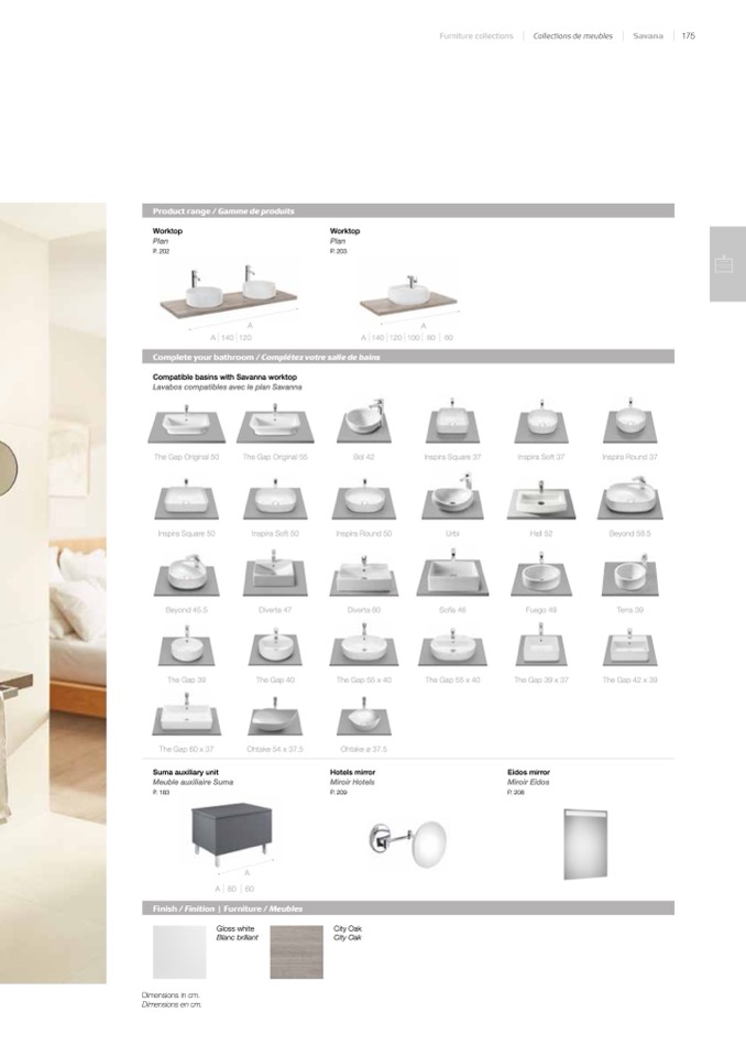 Lavabos compatibles avec le plan Savanna