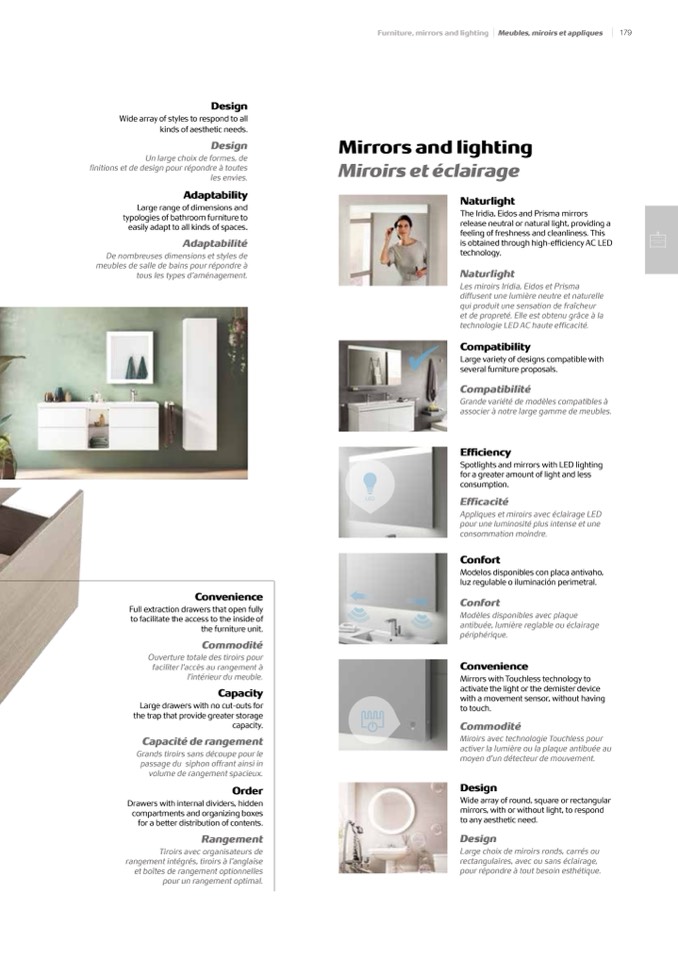 Furniture, mirrors and lighting Meubles, miroirs et appliques