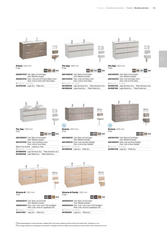 Voir la page indiquée pour développer les informations / Remplacer XXX de la référence du produit par le code de finition choisi / Dimensions en mm.
