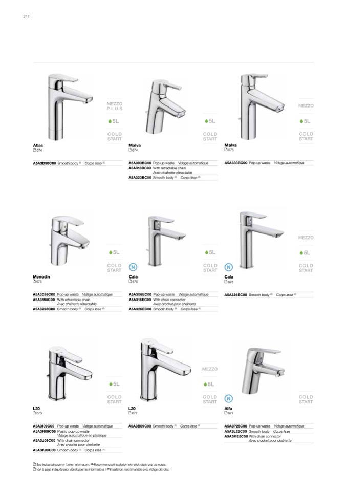 See indicated page for further information / (2) Recommended installation with click-clack pop-up waste.