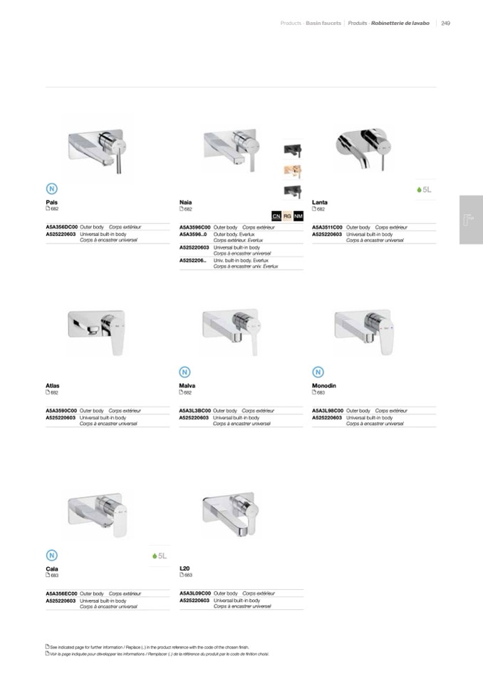 See indicated page for further information / Replace (..) in the product reference with the code of the chosen finish.
